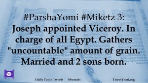 #ParshaYomi #Miketz 3: Joseph appointed Viceroy. In charge of all Egypt. Gathers “uncountable” amount of grain. Married and 2 sons born.