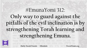 #EmunaYomi 312: Only way to guard against the pitfalls of the evil inclination is by strengthening Torah learning and strengthening Emuna.