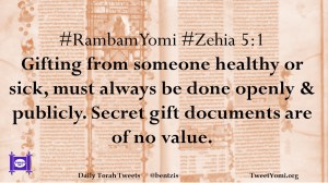 #RambamYomi #Zehia 5:1 Gifting from someone healthy or sick, must always be done openly & publicly. Secret gift documents are of no value.