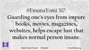 #EmunaYomi 317: Guarding one’s eyes from impure books, movies, magazines, websites, helps escape lust that makes normal person insane.