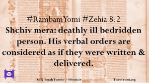 #RambamYomi #Zehia 8:2 Shchiv mera: deathly ill bedridden person. His verbal orders are considered as if they were written & delivered.