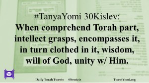 #TanyaYomi 30Kislev: When comprehend Torah part, intellect grasps, encompasses it, in turn clothed in it, wisdom, will of God, unity w/ Him.