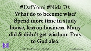 DafYomi, Nida #DafYomi #Nida 70 Date: January 7, 2020Author: ysspitz #DafYomi #Nida 70: What do to become wise? Spend more time in study house, less on business. Many did & didn’t get wisdom. Pray to God also. Share this: Share on X (Opens in new window) X Share on Facebook (Opens in new window) Facebook Like Loading... Related