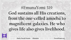 #EmunaYomi 319: God sustains all His creations, from the one-celled amoeba to magnificent galaxies. He who gives life also gives livelihood.