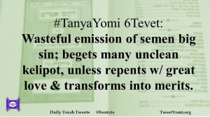 #TanyaYomi 6Tevet: Wasteful emission of semen big sin; begets many unclean kelipot, unless repents w/ great love & transforms into merits.