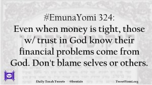 #EmunaYomi 324: Even when money is tight, those w/ trust in God know their financial problems come from God. Don’t blame selves or others.