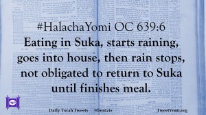 #HalachaYomi OC 639:6 Eating in Suka, starts raining, goes into house, then rain stops, not obligated to return to Suka until finishes meal.