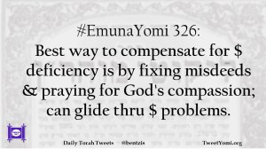 #EmunaYomi 326: Best way to compensate for $ deficiency is by fixing misdeeds & praying for God’s compassion; can glide thru $ problems.
