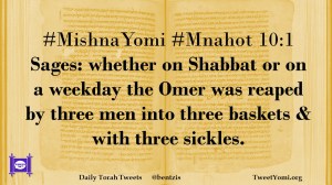 #MishnaYomi #Mnahot 10:1 Sages: whether on Shabbat or on a weekday the Omer was reaped by three men into three baskets & with three sickles.