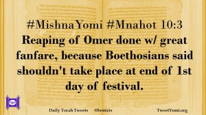 #MishnaYomi #Mnahot 10:3 Reaping of Omer done w/ great fanfare, because Boethosians said shouldn’t take place at end of 1st day of festival.