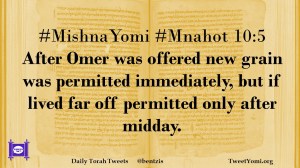 #MishnaYomi #Mnahot 10:5 After Omer was offered new grain was permitted immediately, but if lived far off permitted only after midday.