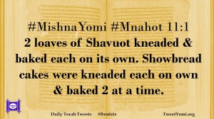 #MishnaYomi #Mnahot 11:1 2 loaves of Shavuot kneaded & baked each on its own. Showbread cakes were kneaded each on own & baked 2 at a time.