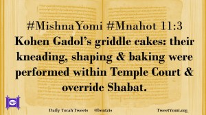 #MishnaYomi #Mnahot 11:3 Kohen Gadol’s griddle cakes: their kneading, shaping & baking were performed within Temple Court & override Shabat.
