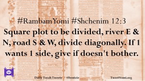 #RambamYomi #Shchenim 12:3 Square plot to be divided, river E & N, road S & W, divide diagonally. If 1 wants 1 side, give if doesn’t bother.