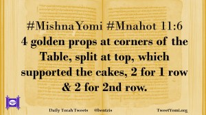 #MishnaYomi #Mnahot 11:6 4 golden props at corners of the Table, split at top, which supported the cakes, 2 for 1 row & 2 for 2nd row.