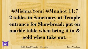 #MishnaYomi #Mnahot 11:7 2 tables in Sanctuary at Temple entrance for Showbread: put on marble table when bring it in & gold when take out.