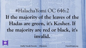 #HalachaYomi OC 646:2 If the majority of the leaves of the Hadas are green, it’s Kosher. If the majority are red or black, it’s invalid.