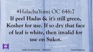 #HalachaYomi OC 646:7 If peel Hadas & it’s still green, Kosher for use. If so dry that face of leaf is white, then invalid for use on Sukot.