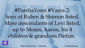 #ParshaYomi #Vaera 2: Sons of Ruben & Shimon listed. More descendents of Levi listed, up to Moses, Aaron, his 4 children & grandson Pinhas.