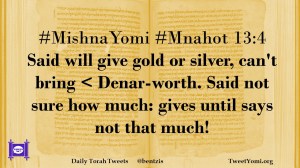 #MishnaYomi #Mnahot 13:4 Said will give gold or silver, can’t bring < Denar-worth. Said not sure how much: gives until says not that much!