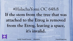 #HalachaYomi OC 648:8 If the stem from the tree that was attached to the Etrog is removed from the Etrog, leaving a space, it’s invalid.