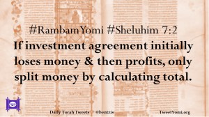 #RambamYomi #Sheluhim 7:2 If investment agreement initially loses money & then profits, only split money by calculating total.
