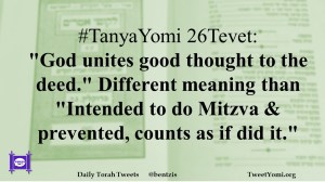 #TanyaYomi 26Tevet: “God unites good thought to the deed.” Different meaning than “Intended to do Mitzva & prevented, counts as if did it.”