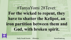 #TanyaYomi 28Tevet: For the wicked to repent, they have to shatter the Kelipot, an iron partition between them and God, with broken spirit.