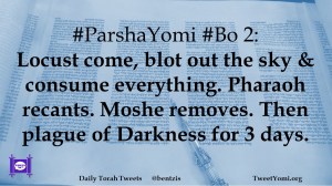 #ParshaYomi #Bo 2: Locust come, blot out the sky & consume everything. Pharaoh recants. Moshe removes. Then plague of Darkness for 3 days.
