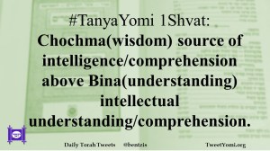 #TanyaYomi 1Shvat: Chochma(wisdom) source of intelligence/comprehension above Bina(understanding) intellectual understanding/comprehension.
