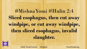 #MishnaYomi #Hulin 2:4 Sliced esophagus, then cut away windpipe, or cut away windpipe, then sliced esophagus, invalid slaughter.