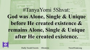 #TanyaYomi 5Shvat: God was Alone, Single & Unique before He created existence & remains Alone, Single & Unique after He created existence.