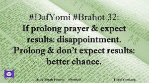 Brahot, DafYomi #DafYomi #Brahot 32 Date: February 4, 2020Author: ysspitz #DafYomi #Brahot 32: If prolong prayer & expect results: disappointment. Prolong & don’t expect results: better chance. Share this: Share on X (Opens in new window) X Share on Facebook (Opens in new window) Facebook Like Loading... Related