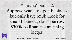 #EmunaYomi 352: Suppose want to open business but only have $50k. Look for small business; don’t borrow $500k to finance something bigger.