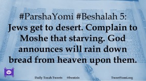 #ParshaYomi #Beshalah 5: Jews get to desert. Complain to Moshe that starving. God announces will rain down bread from heaven upon them.
