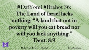 Brahot, DafYomi #DafYomi #Brahot 36 Date: February 7, 2020Author: ysspitz #DafYomi #Brahot 36: The Land of Israel lacks nothing: “A land that not in poverty will you eat bread nor will you lack anything.” Deut. 8:9 Share this: Share on X (Opens in new window) X Share on Facebook (Opens in new window) Facebook Like Loading... Related