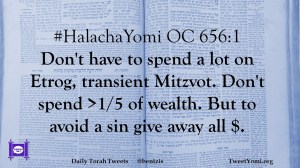 #HalachaYomi OC 656:1 Don’t have to spend a lot on Etrog, transient Mitzvot. Don’t spend >1/5 of wealth. But to avoid a sin give away all $.