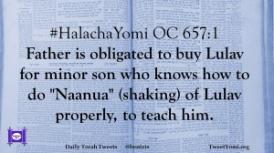 #HalachaYomi OC 657:1 Father is obligated to buy Lulav for minor son who knows how to do “Naanua” (shaking) of Lulav properly, to teach him.
