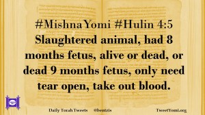 #MishnaYomi #Hulin 4:5 Slaughtered animal, had 8 months fetus, alive or dead, or dead 9 months fetus, only need tear open, take out blood.