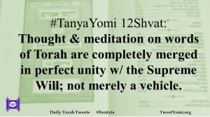 #TanyaYomi 12Shvat: Thought & meditation on words of Torah are completely merged in perfect unity w/ the Supreme Will; not merely a vehicle.