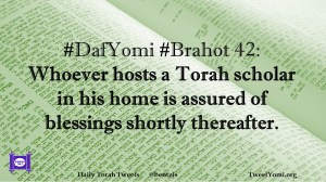 Brahot, DafYomi #DafYomi #Brahot 42 Date: February 14, 2020Author: ysspitz #DafYomi #Brahot 42: Whoever hosts a Torah scholar in his home is assured of blessings shortly thereafter. Share this: Share on X (Opens in new window) X Share on Facebook (Opens in new window) Facebook Like Loading... Related