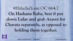 #HalachaYomi OC 664:7 On Hashana Raba, best if put down Lulav and grab Aravot for Chavata separately, as opposed to holding them together.