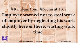 #RambamYomi #Sechirut 13:7 Employee warned not to steal work of employer by neglecting his work slightly here & there, wasting work time.