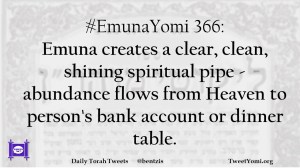 #EmunaYomi 366: Emuna creates a clear, clean, shining spiritual pipe – abundance flows from Heaven to person’s bank account or dinner table.