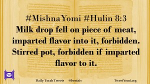 #MishnaYomi #Hulin 8:3 Milk drop fell on piece of meat, imparted flavor into it, forbidden. Stirred pot, forbidden if imparted flavor to it.