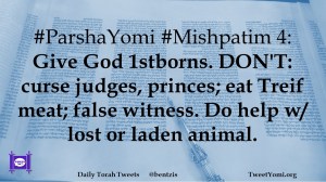 #ParshaYomi #Mishpatim 4: Give God 1stborns. DON’T: curse judges, princes; eat Treif meat; false witness. Do help w/ lost or laden animal.