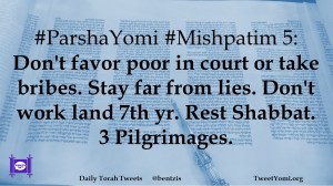 #ParshaYomi #Mishpatim 5: Don’t favor poor in court or take bribes. Stay far from lies. Don’t work land 7th yr. Rest Shabbat. 3 Pilgrimages.
