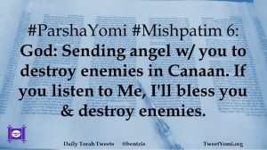 #ParshaYomi #Mishpatim 6: God: Sending angel w/ you to destroy enemies in Canaan. If you listen to Me, I’ll bless you & destroy enemies.