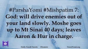 #ParshaYomi #Mishpatim 7: God: will drive enemies out of your land slowly. Moshe goes up to Mt Sinai 40 days; leaves Aaron & Hur in charge.