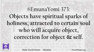 #EmunaYomi 373: Objects have spiritual sparks of holiness, attracted to certain soul who will acquire object, correction for object & self.